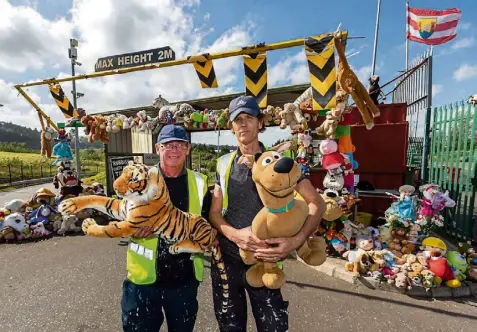 Paul Walsh and Finbarr Sheehan show off the impressive haul of displayed soft toys they saved from destruction at Tramore Valley Amenity Centre. Their aim is to put a smile on their customers faces as they recycle.